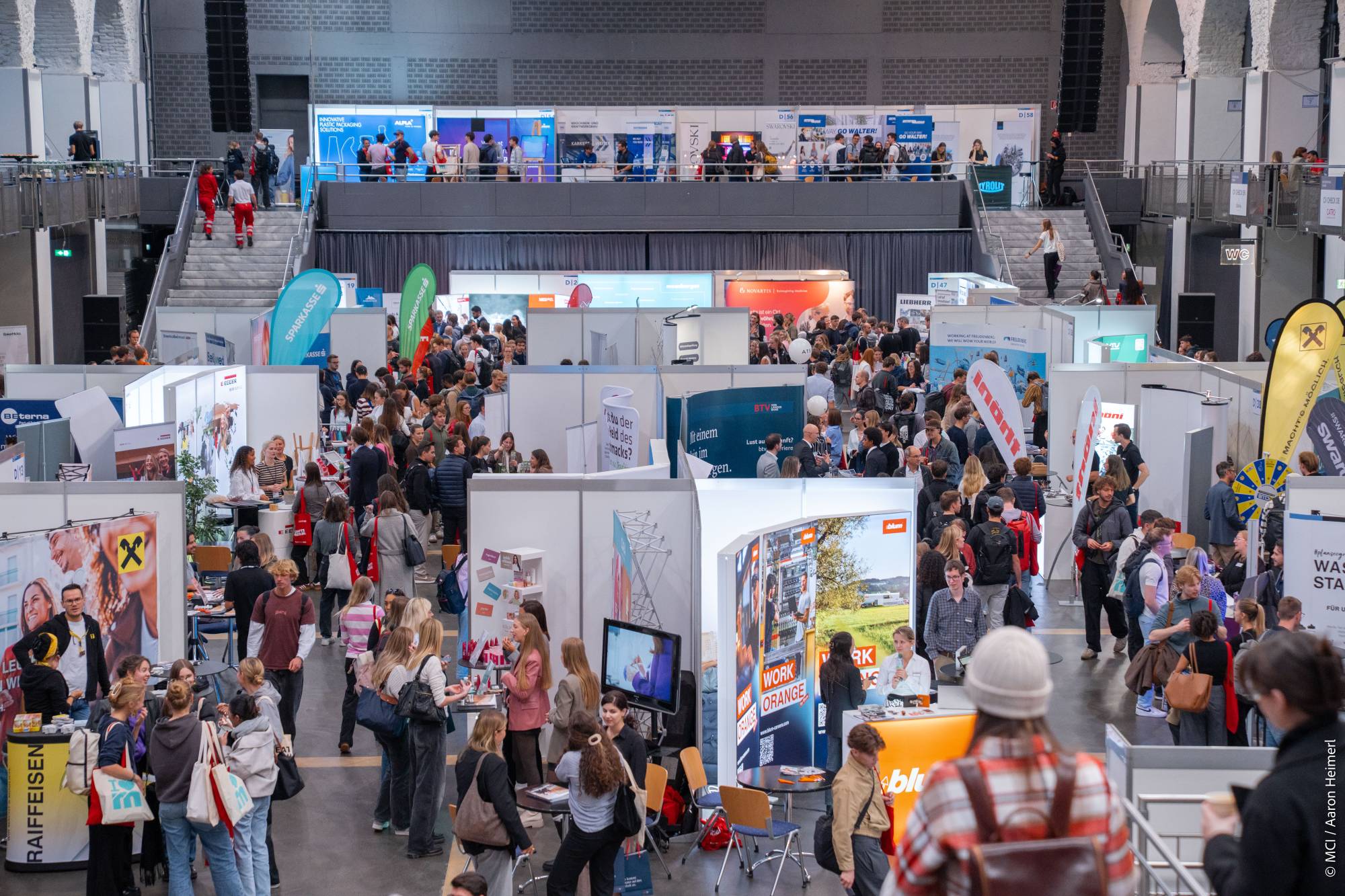 Wie bereits in den Vorjahren präsentierte sich eine vielfältige Ausstellerlandschaft: Neben renommierten Großunternehmen waren zahlreiche Start-ups, NGOs, Familienbetriebe und neue Unternehmenspartner mit Angeboten zu Praktika, Einstiegsjobs, Abschlussarbeiten und Karrieremöglichkeiten im In- und Ausland vertreten. Dank der digitalen MCI-Karriereplattform konnten sich Besucher:innen bereits im Vorfeld gezielt über Aussteller informieren und Gesprächstermine buchen.
