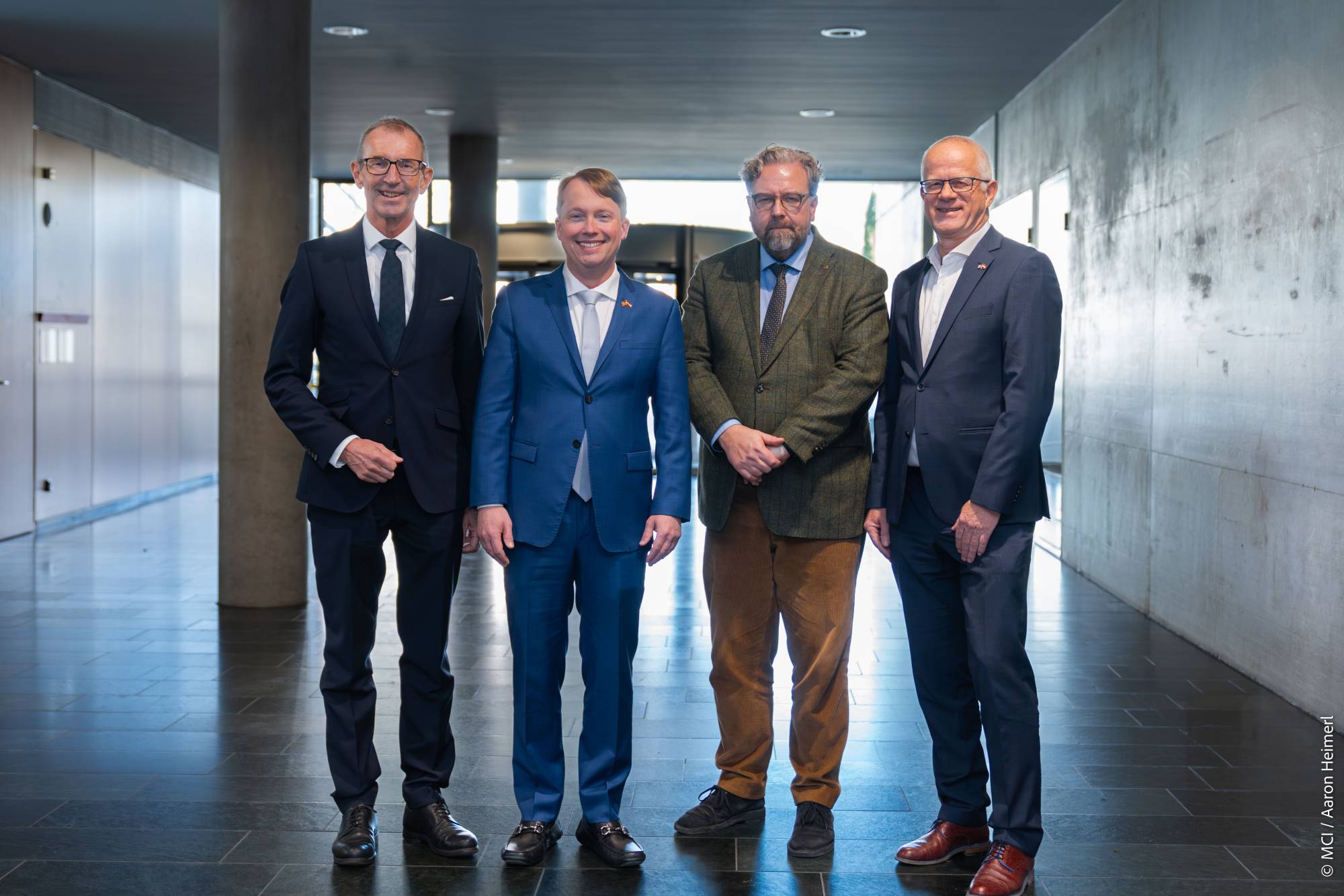Nach der Begrüßung durch MCI Rektor Andreas Altmann richteten Max Kloger, Präsident der Industriellenvereinigung Tirol und Dirk Rupnow, Vizerektor der Universität Innsbruck, ihre Grußworte an das Publikum und unterstrichen die Bedeutung des transatlantischen Austauschs auf wirtschaftlicher und akademischer Ebene.