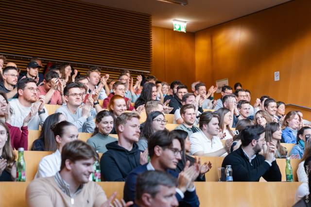 In der anschließenden Diskussion nutzten Studierende sowie Vertreter:innen aus Wirtschaft und Wissenschaft die Gelegenheit zum offenen Austausch über Wettbewerbsfähigkeit, Innovationskraft und die Zukunft der europäisch-amerikanischen Zusammenarbeit.